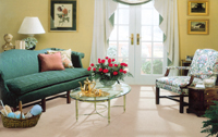 选用材料:地毯 选择理由:采用环保材料和环保技术,无毒无味;经过永久性防污处理,污渍擦后不留痕迹;阻燃;防静电;染色技术使地毯保持鲜艳;耐磨损;素色。 小贴士: 地毯的保养也不是太复杂,注意以下几项应该就OK了: 1.使用防尘地垫,可达到事半功倍的效果。 2.每周两次以上的吸尘是保养地毯最简捷有效的方法。 3.局部污渍应在24小时内使用专业去污剂除污。 4.每年不少于一次的专业地毯清洗,必须是专业设备和专业清洗剂清洁。 5.每年全面积清洗后,可使用防污剂进行防污处理。
