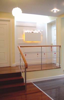 图三,楼梯 错层的相交处历来是设计师施展才华和创意的地方,利用木料不同的色泽来划分区域,利用房间色彩来吸引目光,利用台阶、扶手来拓展空间,就连错层的走廊处,设计师也会在这里的墙面上做些装饰,灯光,造型,饰品都成了设计师的最好道具。