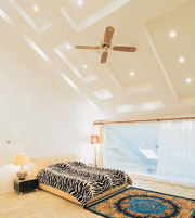 从熙攘的城市中走进他的家里,真让人觉得像是一下子掉进了冰窖,甚至有些郁郁寡欢,兴奋不起来。这个家实在是太空旷了、太简单了。 耐不住这种“冷清”,我终于诘问主人为何不把家中布置一下,看上去也丰富一些。在我等看来,这个家着实有些不食人间烟火。 “刚开始想,可后来实在弄不下去了,就这个样子吧!”李雷曾想在自己卧室雪白的墙上挂一幅硕大的挂毯,但最终打消了这个念头,因为“觉得很奇怪”。 抬眼看一看卧室中高高的斜屋顶,被几何形灯槽分割出的天花上仅挂着一个老式的吊扇,孤单单的,于是又问:“你这家里空空的,多浪费呀!你的朋友怎么说?”