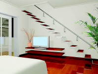 起居室:该空间原为主卧室,考虑到实际情况,设计师将其改为专供张小姐接待好友或日常休息的起居室。在设计创意上,设计师以墙面的白色为主色,配以暗红色地板,而乳白色布艺 沙发 、绿色植物及干花等元素的使用,给客厅增添了柔美和素雅的氛围。电视背景墙设计得新颖别致,富有创意,给人一种拾阶而上的视觉延伸。 |