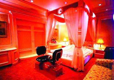卧室:幽谧温馨的灯光,柔滑宽松的睡衣,玫瑰色的床单、软绵绵的床垫,波浪式翻动的拖地 窗帘 ,淡黄色木质装修的地板,通透玲珑的天顶设计,以及空气清新调节器,这些都是获得心平气和,轻松自如的前提条件,当然也是做个时尚女人的卧室必备。