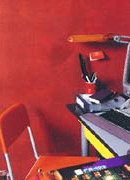 4.刷出层次感:将整面墙涂成深红,在刷油漆时故意不将油漆刷匀均,有厚有薄,好似 油画 般,使墙面显得有层次感。