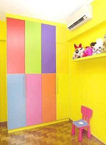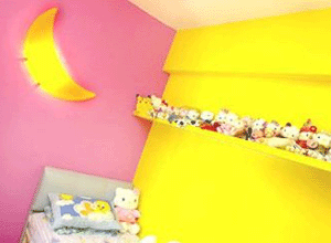 客厅——柠檬绿色+鲜艳橙色 主人房——紫色的浪漫 儿童房——最爱黄色 衣橱——颜色比彩虹还多 书房——蓝色不忧郁 饭厅——温和高贵 厨房——浪漫粉红 |