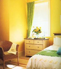 在比较年轻人士的居住空间中,使用鹅黄色搭配紫蓝色或嫩绿色是一种很好的配色方案。鹅黄色是一种清新、鲜嫩的颜色,代表的是新生命的喜悦,最适合家里有小baby的居家色调。