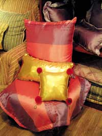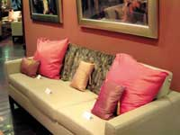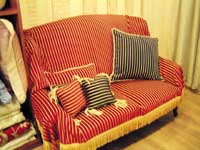 为此,圣诞节到来之前,我们的记者专程出击,为希望给家营造圣诞气氛的你去搜索、发现、挑选、挖掘装饰你的“圣诞之家”的好东东。如果你的口味与我们相当,那今年的圣诞一定是一个让你和你的家人狂喜的圣诞! 发现一 温暖圣诞 发现圣诞之二 发现圣诞之三 发现圣诞之四 因为寒冷,所以我们渴望温暖;因为漫天飞雪,所以我们需要柔软的触感,就来过个暖融融的圣诞节吧。 发现地点1 燕莎商城、赛特商城花田家品 许多人都希望圣诞节家里的装扮是“正宗”的圣诞感觉,并为此非常发愁。其实这大可不必。装饰过程本身既是一个简单的过程,也是一个快乐的过程,只要巧妙地运用布艺,就可以令居室大范围的发生变化,而且瞬间变得“欧化”起来。 不信,你就试一试。 红色 沙发 布
