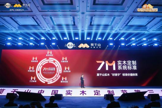战略发布现场,多个平台与云峰莫干山共同启动“数字星链联盟”,从流量、技术到运营全维度赋能终端。来自南昌、杭州等地经销商的实战案例分享,则为战略可行性提供了生动注脚:南昌店探索“1+3+6星系模式”,通过运营区域运营中心直播间、二级经销商直播间、家具厂直播间实现业绩突破;杭州西湖店布局全域渠道,线上业绩占比已超35%。 “数字化不是选择题,而是时代必答题。”云峰莫干山数字营销总监王泽来的这句话,道出了云峰莫干山此次战略转型的决心与紧迫感。 标准再造:以“7M标准”回应“好房子”时代命题 本次发布会的另一大亮点,当属3月20日在莫干山全屋定制第三季实木定制节上重磅发布的实木“好房子”标准价值体系——7M实木定制系统标准。这一标准体系的发布,同样有着深刻的时代背景。2026年《政府工作报告》明确提出,有序推动安全、舒适、绿色、智慧的“好房子”建设,实施房屋品质提升工程。当“好房子”成为国家战略方向,家居行业如何回应这一命题?